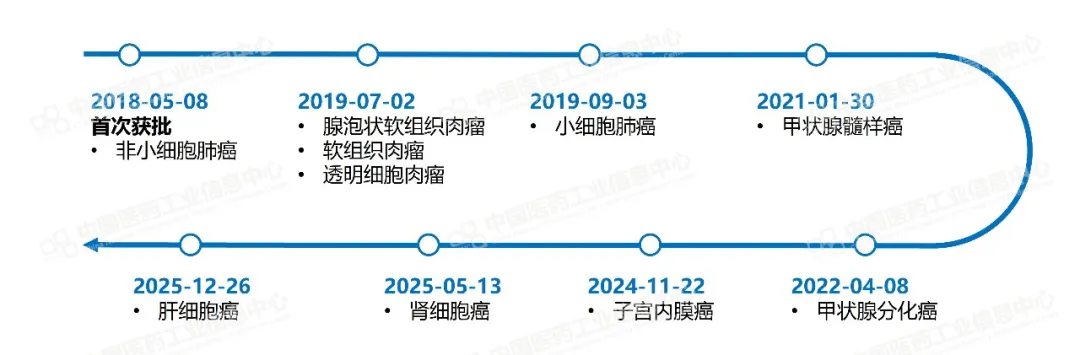 而在国内,安罗替尼(福可维®)的适应症在持续扩张。根据Pharma ONE数据显示,该药目前已获批10项适应症。