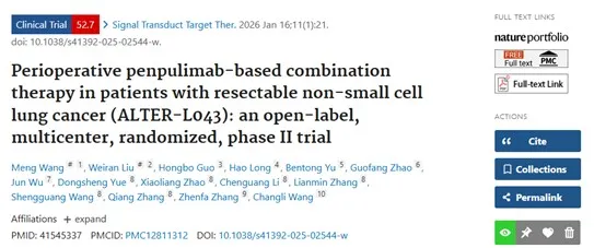 而近日发表于《Nature》子刊的ALTER-L043研究,则创新性地探索了“免疫+抗血管+化疗”的四药联合模式在非小细胞肺癌围术期治疗中的应用,四药组的主要病理缓解率高达76.0%,24个月EFS率仍维持在94.1%,为局部晚期患者的深度缓解和长期生存提供了全新策略。