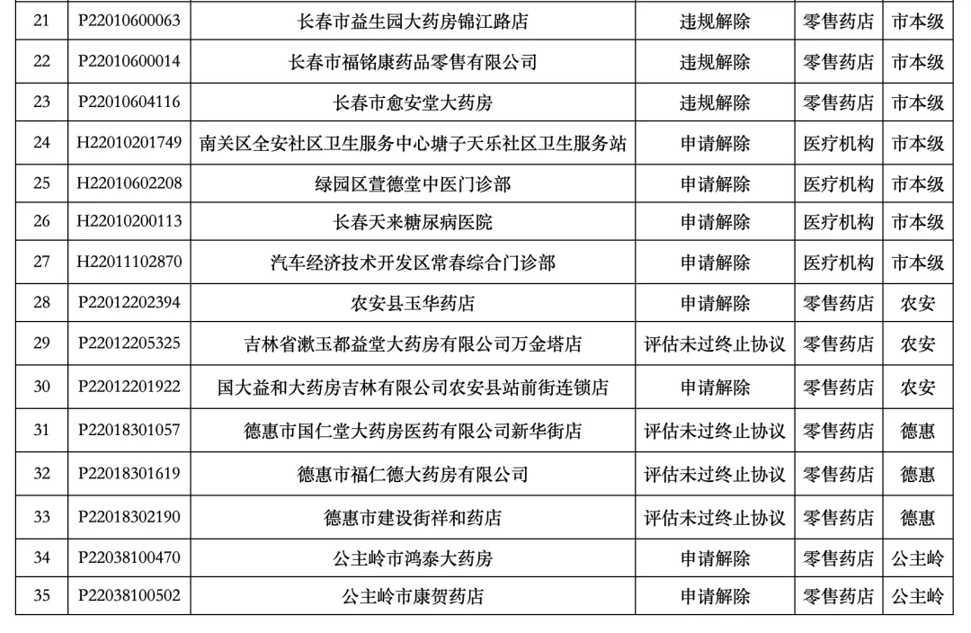 2026年长春市第一批解除医保服务协议医药机构名单