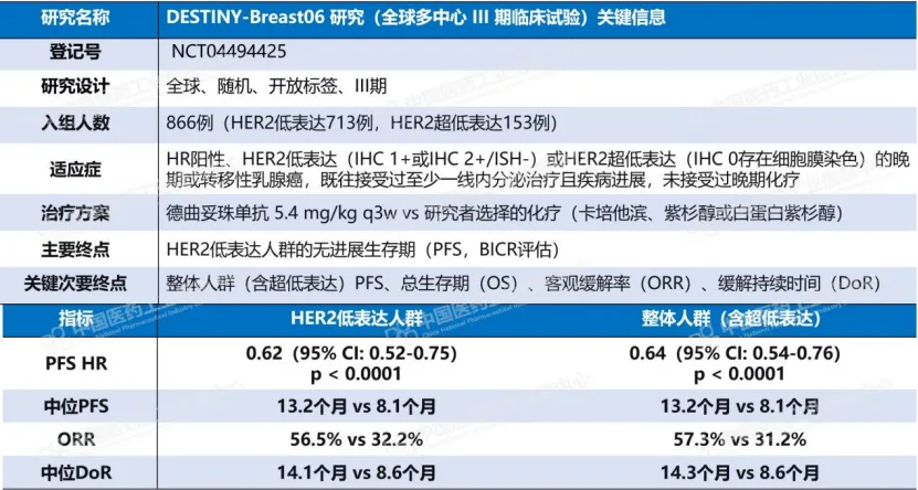 德曲妥珠单抗的征伐从未停歇,它在中国市场的战略纵深令人惊叹。2025年12月,基于DESTINY-Breast06研究,它获批用于HR阳性、HER2低表达及超低表达乳腺癌,成为首个覆盖该人群的HER2靶向疗法,将中位无进展生存期提升至13.2个月,客观缓解率达56.5%。