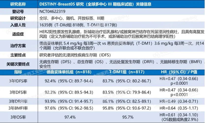 DESTINY-Breast05的阳性结果,将德曲妥珠单抗推向了HER2阳性早期乳腺癌的辅助治疗:相比传统T-DM1,复发或死亡风险大幅降低53%,3年无浸润性疾病生存率达92.4%,今年2月,这项适应症在国内拿下突破性疗法和上市申请受理。