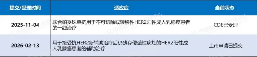 表2:德曲妥珠单抗在国内已提交的适应症上市申请信息和情况