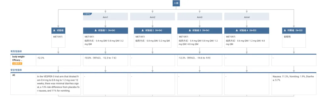 IIb 期 VESPER-3 研究显示,MET-097i 治疗 28 周减重 12.3%,安全性与 GLP-1RA 类药物的特征一致。在改为每月 1 次用药后,患者的体重下降稳健且持续,第 28 周时仍未见平台期,预计到第 64 周之前体重仍会持续下降。