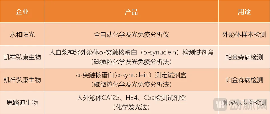 不同于海外外泌体临床研究主要集中在治疗和递送,国内的外泌体诊断、外泌体规模化生产快速成长也值得一提。其中,尔瑞鑫悦子公司凯祥弘康生物研发的α-突触核蛋白测定试剂盒在2024年获批上市,成为全球首款基于外泌体检测的帕金森病体外诊断产品。此外,思路迪生物开发了用于外泌体样本的肿瘤标志物检测试剂盒,永和阳光的外泌体样本分析仪也获批上市。