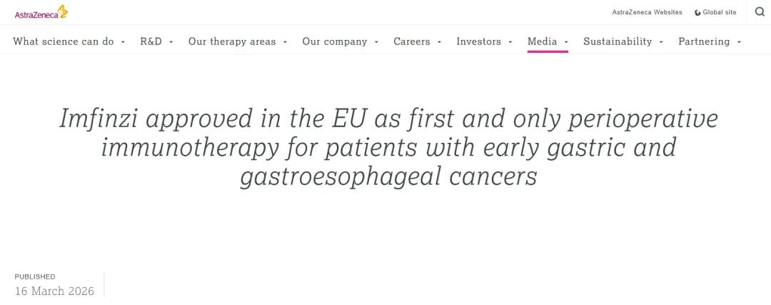 新闻稿指出,本次获批也使度伐利尤单抗成为欧盟首个也是目前唯一一个用于治疗早期胃癌和胃食管癌患者的围手术期免疫疗法。