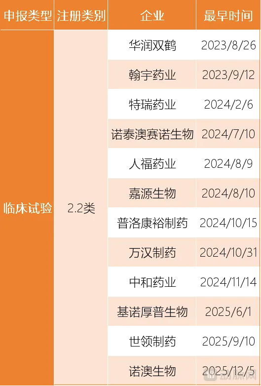 部分正在开展临床试验的2.2类国产司美格鲁肽厂商 数据来源:根据公开信息整理