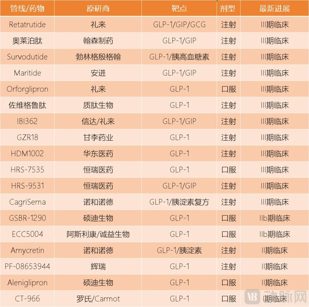 部分临床试验中的GLP-1管线 数据来源:根据公开信息整理