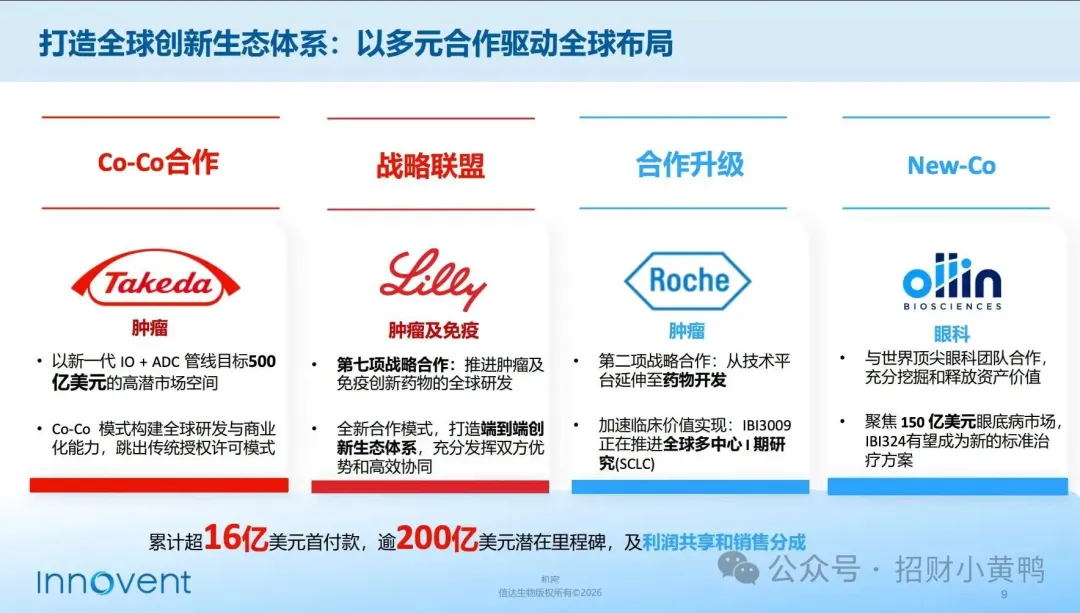 2025至2026年,信达生物以多元合作模式开启国际化新篇章,接连与罗氏、武田、礼来等达成超220亿美元重磅BD合作,从本土创新药企,升级为全球创新生态的核心合伙人。顶级国际药企的持续携手,正是对公司研发实力与综合能力的高度认可。
