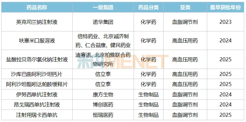 表1:2025版国家医保目录新增的心脑血管药物