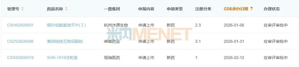 来源:米内网中国申报进度(MED)数据库