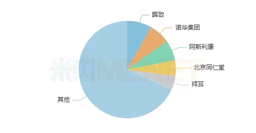 2025年销售额超过10亿元的产品有8个,中成药安宫牛黄丸以38.1亿元销售额稳居榜首,7个化学药中5个有正增长,阿托伐他汀钙片大卖31.6亿元,晖致占比高达七成,苯磺酸氨氯地平片、瑞舒伐他汀钙片、硝苯地平控释片销售额在20亿元以上,原研药企抢占大半壁江山,沙库巴曲缬沙坦钠片销售额达12.8亿元,诺华占比高达97%。