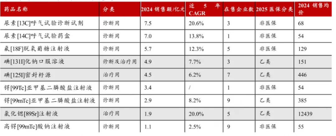 从2024-2025年中国核药TOP10榜单看,核药畅销品种均为传统仿制品种,这代表国内正处于传统品种转型创新的阵痛期,吉伦泰99mTc-3PRGD2“全球首创”吹响这一创新转型号角。