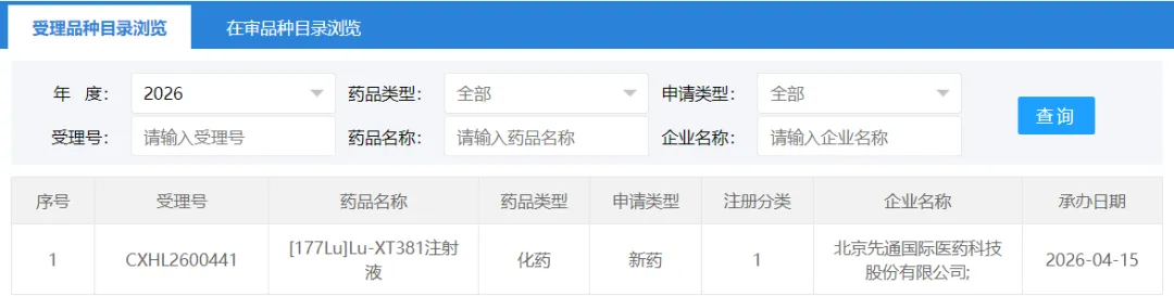 图1. 氟[18F]妥司特注射液上市申请获得受理,来源:CDE官网