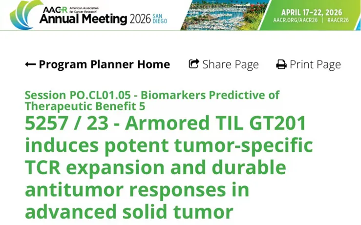 值得关注的是,在今年 4 月的 AACR 年会公布的最新研究摘要中,我们注意到,中国恰好有一家公司,正沿着几乎相同路径走到了「更前沿」——沙砾生物自主研发的膜结合 IL-15 细胞因子强化型肿瘤浸润淋巴细胞(TIL)产品 GT201,已在会上披露了最新临床数据及 TCR 克隆特征与动态变化研究成果。