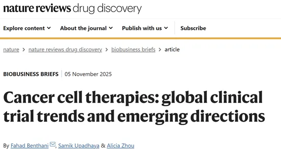 Nature Reviews Drug Discovery 文章资料显示,细胞疗法的适应症正从血液肿瘤向实体瘤快速扩展,2023