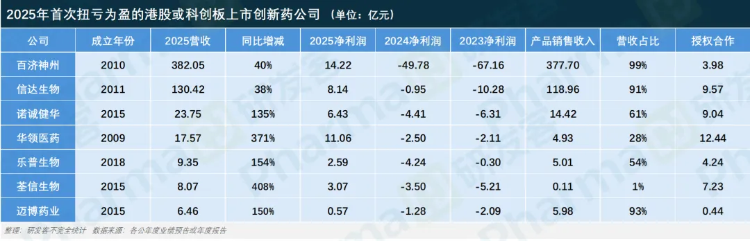• 百济神州、信达、诺诚健华等均在2025年首度扭亏为盈;