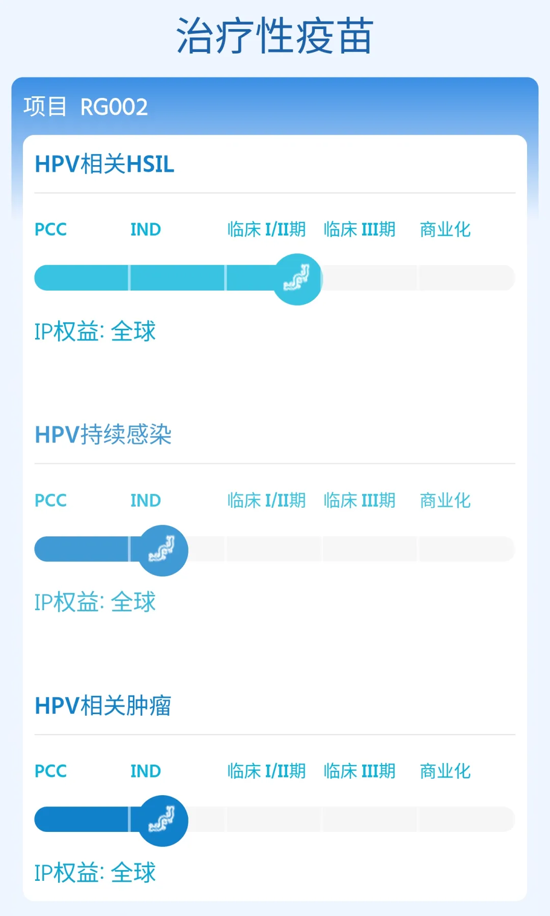 仁景生物核心产品——用于治疗 HPV16 与 18 型病毒感染相关病变的 mRNA 治疗性疫苗管线RG002已同步获得中国国家药监局(NMPA)与美国 FDA 的 IND 批准,并已于中国启动II期临床研究,数据显示其安全性优异、疗效卓越,最低剂量组已实现100%疗效。今年,其多抗原呼吸道合胞病毒 (RSV) 疫苗管线RG004 的IND申请也已获批,并有其他多条管线处于中美 IND 报批中。