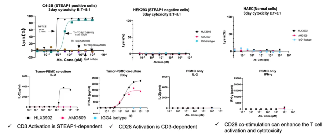 以HLX3902为例,这一靶向STEAP1×CD3×CD28的三特异性抗体,在临床前数据中展现出的优势并不只是体现在杀伤强度上,而更多体现在功能的持续性上。在低效靶比条件下仍保持显著活性,并在极低剂量下表现出优于同类分子的抗肿瘤效果,同时能够显著促进T细胞的增殖、记忆形成及持续杀伤能力。这些特征指向一个更本质的问题:即TCE的竞争已经从“谁更强”转向“谁更持久”。