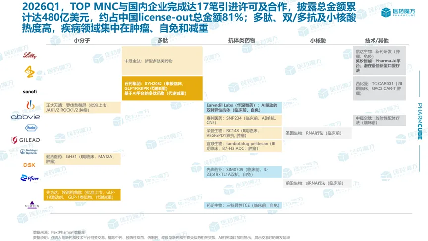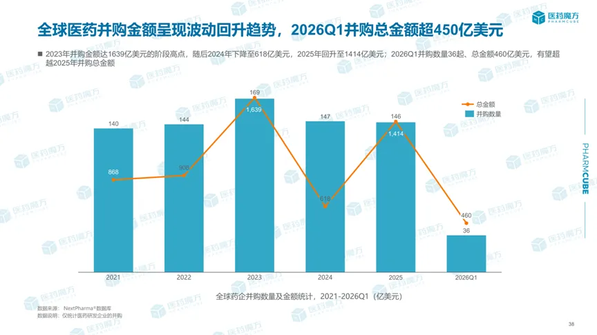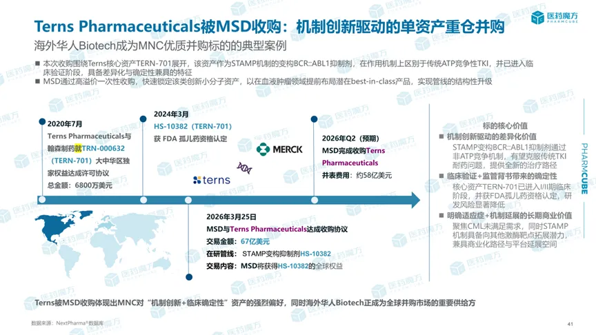 MNC更倾向于围绕已验证的作用机制进行垂直整合,而中国等新兴市场的创新资产在全球并购版图中的战略地位正持续提升。