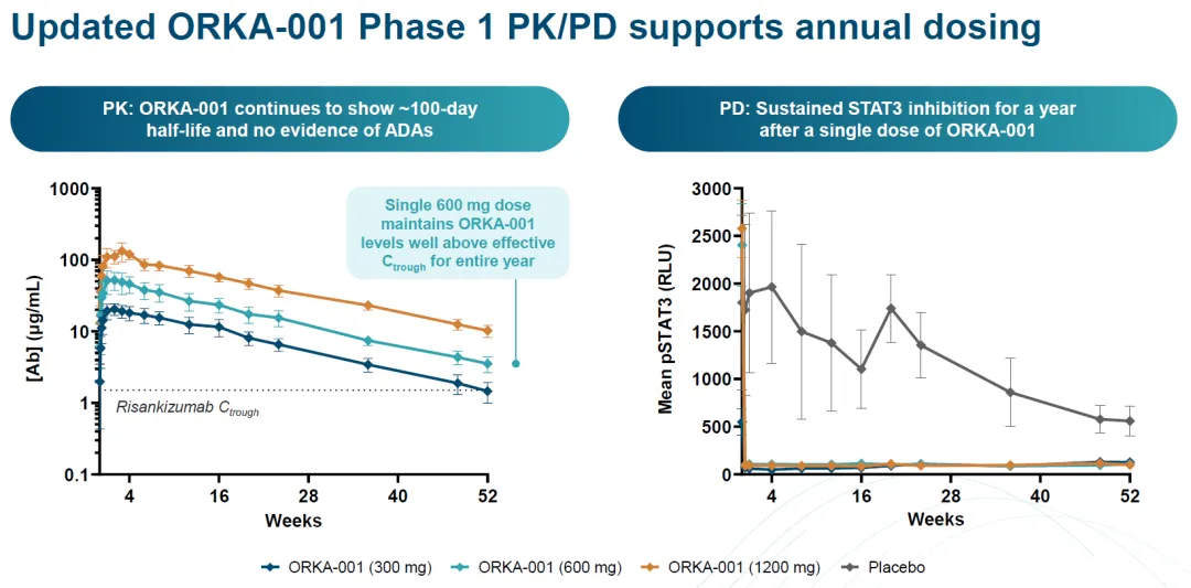 药代动力学数据显示支持ORKA-001每年给药一次的频率。