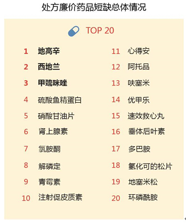 根据医生们遇到短缺情况统计,Top20的药品如下图所示: