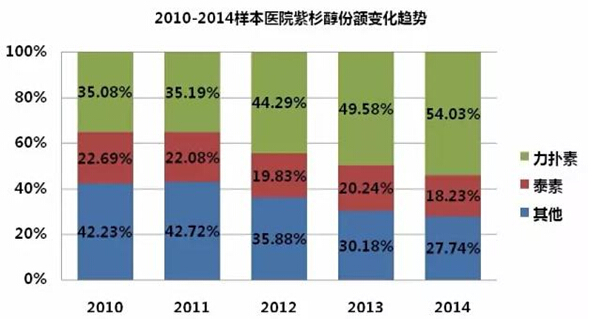 根据药学会样本医院销售数据库,2014年样本医院泰嘉销售额为5.50亿元,市场份额逐年上升,从2010年的20.09%上升到2014年的34.50%。